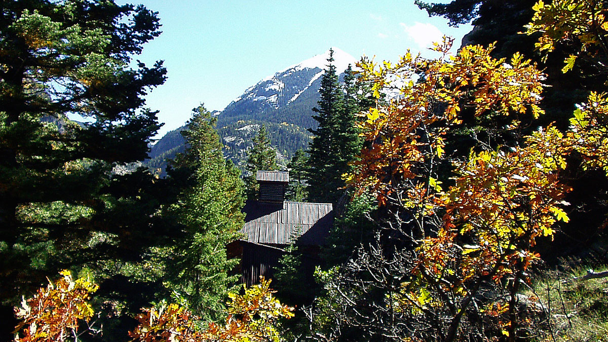 The round trip to the overlook and back is only about 4 miles, with a 900 foot altitude gain enroute. The first one half mile is steep, but provides a beautiful view of Ouray. The next 1.3 miles are gentle and follow along the top of the bench above the Uncompahgre River gorge to the overlook. To continue on the the Neosho and its well preserved "Antiques 9-5:30" blacksmith shop and boardinghouse, go right over the two Ralston Creek gorges another .5 mile. This section offers a unique view of Bear Creek gorge and falls.