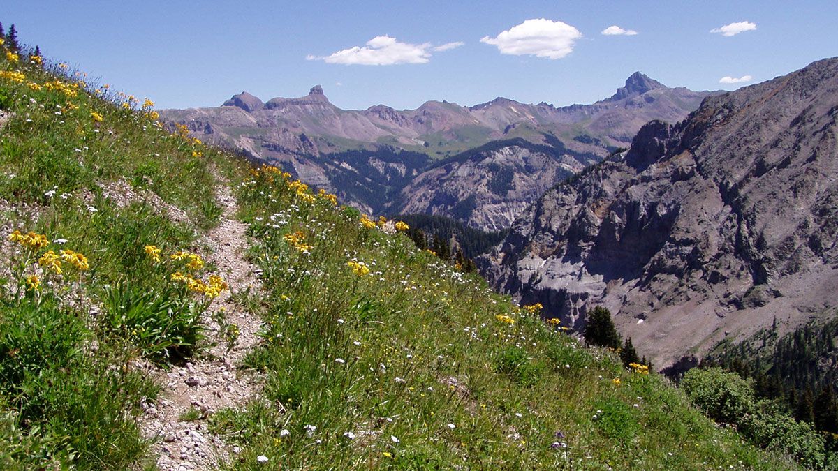 The trail to the peak breaks off the Ridge Stock Driveway Trail on the southeast side of Wetterhorn. From Wetterhorn Basin, a poorly marked trail ascends a west ridge coming off Wetterhorn Peak and then descends to the Ridge Stock trail (about 3 miles). Follow the Ridge Stock east for about 2 miles to the trailhead.