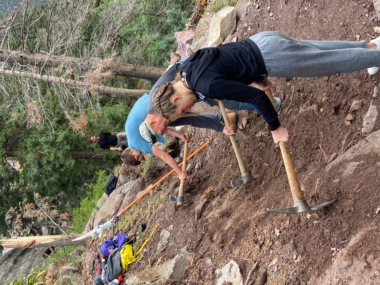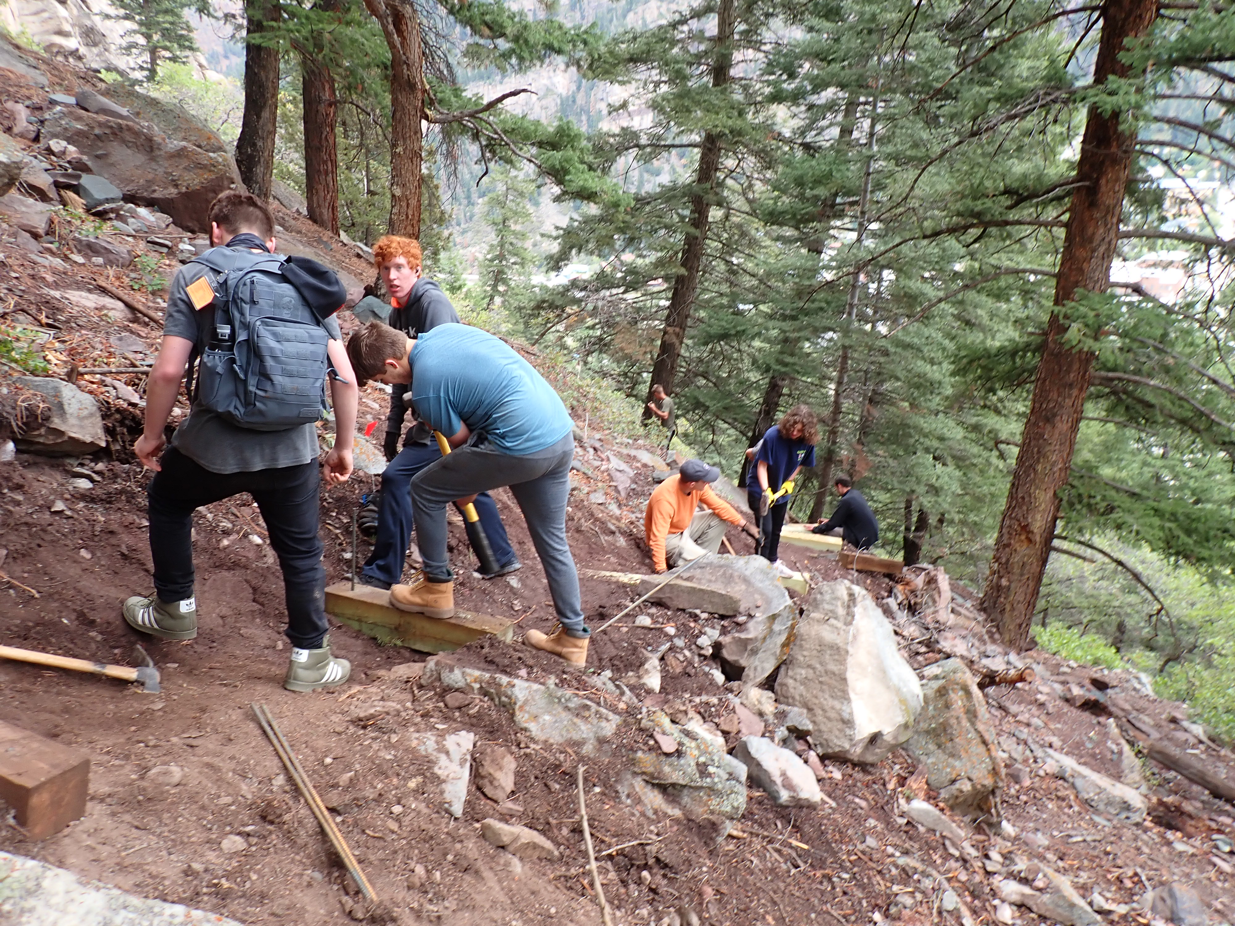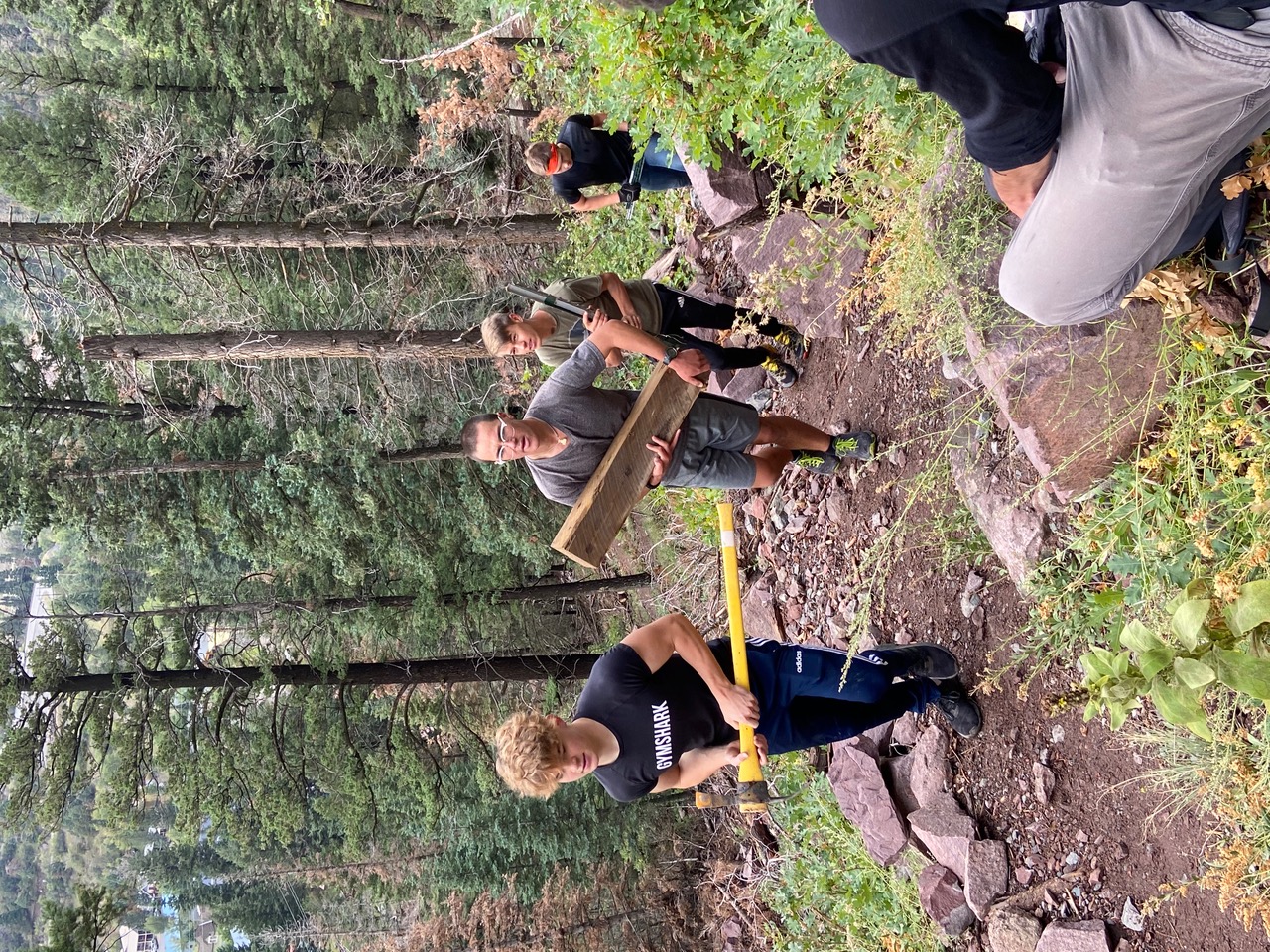 Ouray High School held its annual Community Service Day last Friday. Students were given a choice of four non-profits to work with that day. Approximately 30 students joined 15 OTG volunteers in building the new section of the Ouray Perimeter Trail. OTG provided lunch for students, teachers, and volunteers on a beautiful chilly fall day. Thank you to the OTG volunteers who helped make the day a success: Hale Houts, Steve Boyle, Norb Green, Kent Struble, Tony Hoag, Bob Risch, Debbie Mudge, Debra Houts, Lisa Hickman, Jill Parisi, Charlie Winger, Tom Augustitus, Mike Pelkey, Dennis White, and .