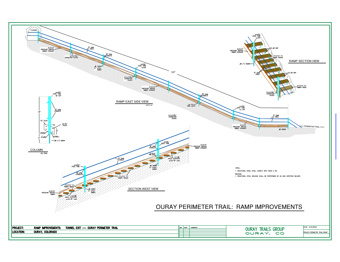 A major setback in the construction of the Perimeter Trail, as originally envisioned, occurred in 2017-18 when a newly constructed metal staircase in the Box Cañon Park was found to be encroaching on a private mining claim. At the landowner’s request, that staircase will be dismantled in the spring of 2019 and other changes made along the trail to minimize the impact of its unfortunate removal.