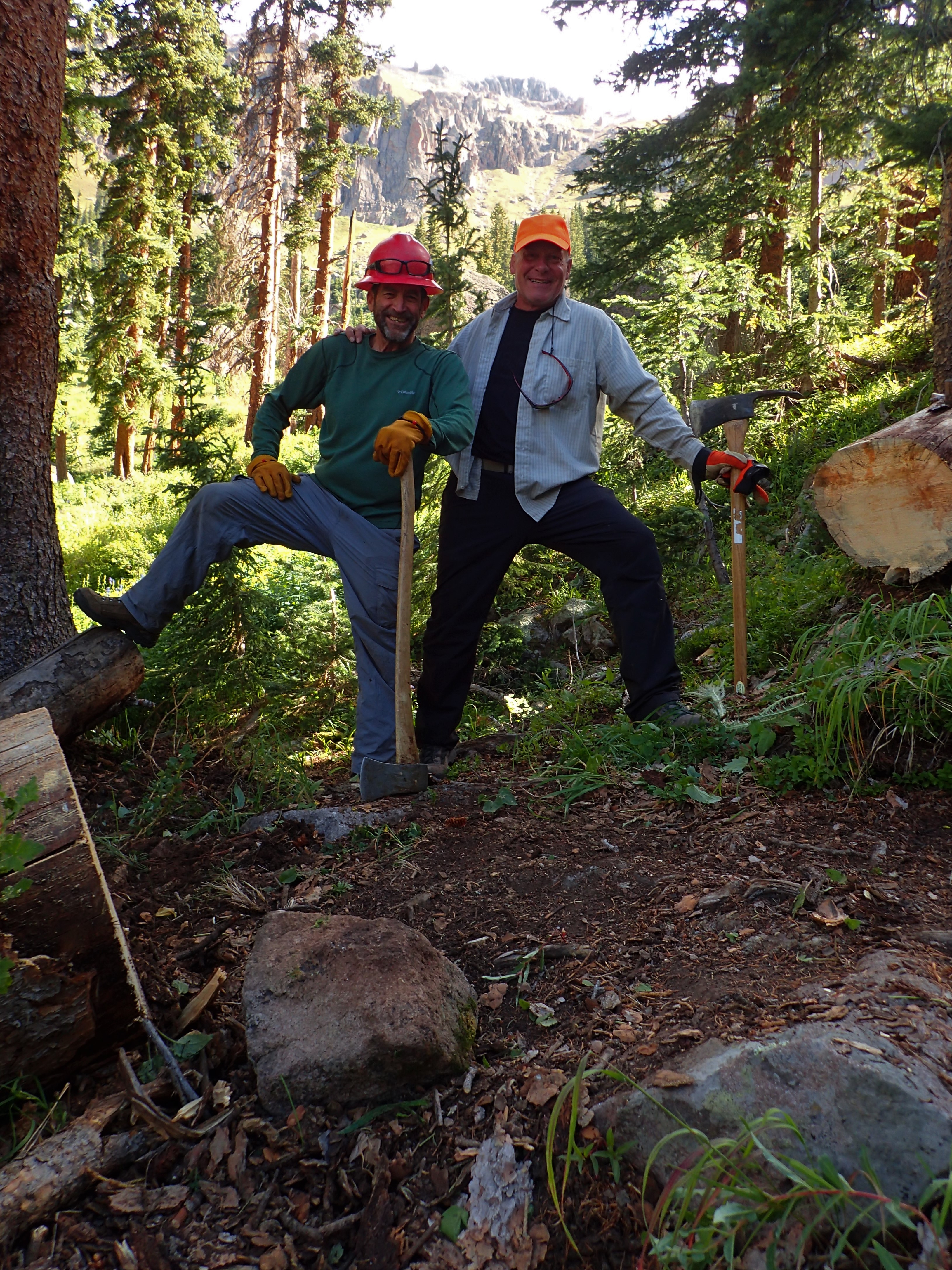 On Sept. 3-4 OTG wilderness trail crews cleared and improved the Cow Creek and Stealey Mountain South trails. On day one, a 4-person crew cleared encroaching brush and tree saplings and improved trail drainage and tread surfaces on the first few miles of both trails. On both days, a 3-person saw team cleared about 60 downed trees on the Cow Creek Trail, opening it for hiker and horse travel from the FS Rd. 857 trailhead up to near treeline, about 4.5 miles up the trail. The biggest concentration of trees was in avalanche slide paths where piles of trees were blocking the trail. Roy and Trevor Jackson of Cow Creek Outfitters kindly volunteered horses to pack the saw crew’s overnight camp equipment up the trail.