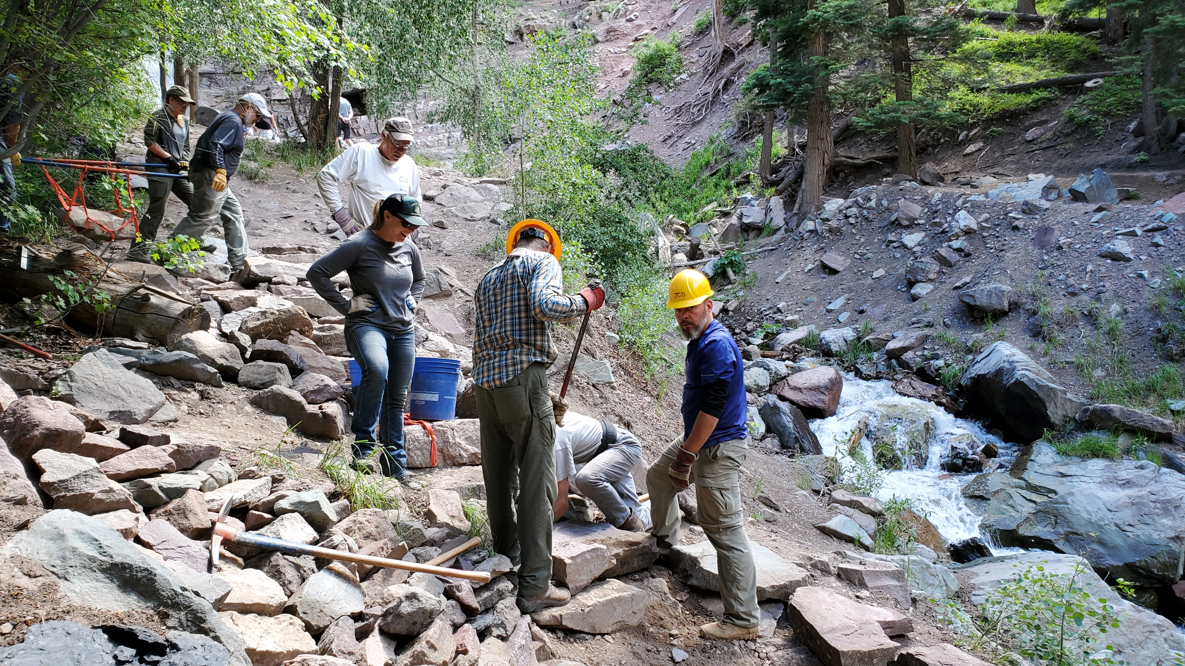 The Perimeter Trail west of Ouray includes a section where hikers must walk along Oak Street, but OTG has found an exciting new opportunity to extend the trail northward so that it reaches Oak Street at the City Shop, where the trail continues east across a footbridge and into Fellin Park near the City Pool and Visitor’s Center. The new trail section will be about 0.3 miles long, and will eliminate the current section along Oak Street. Best of all, the new section will have spectacular views of the City and surrounding valley and mountains.