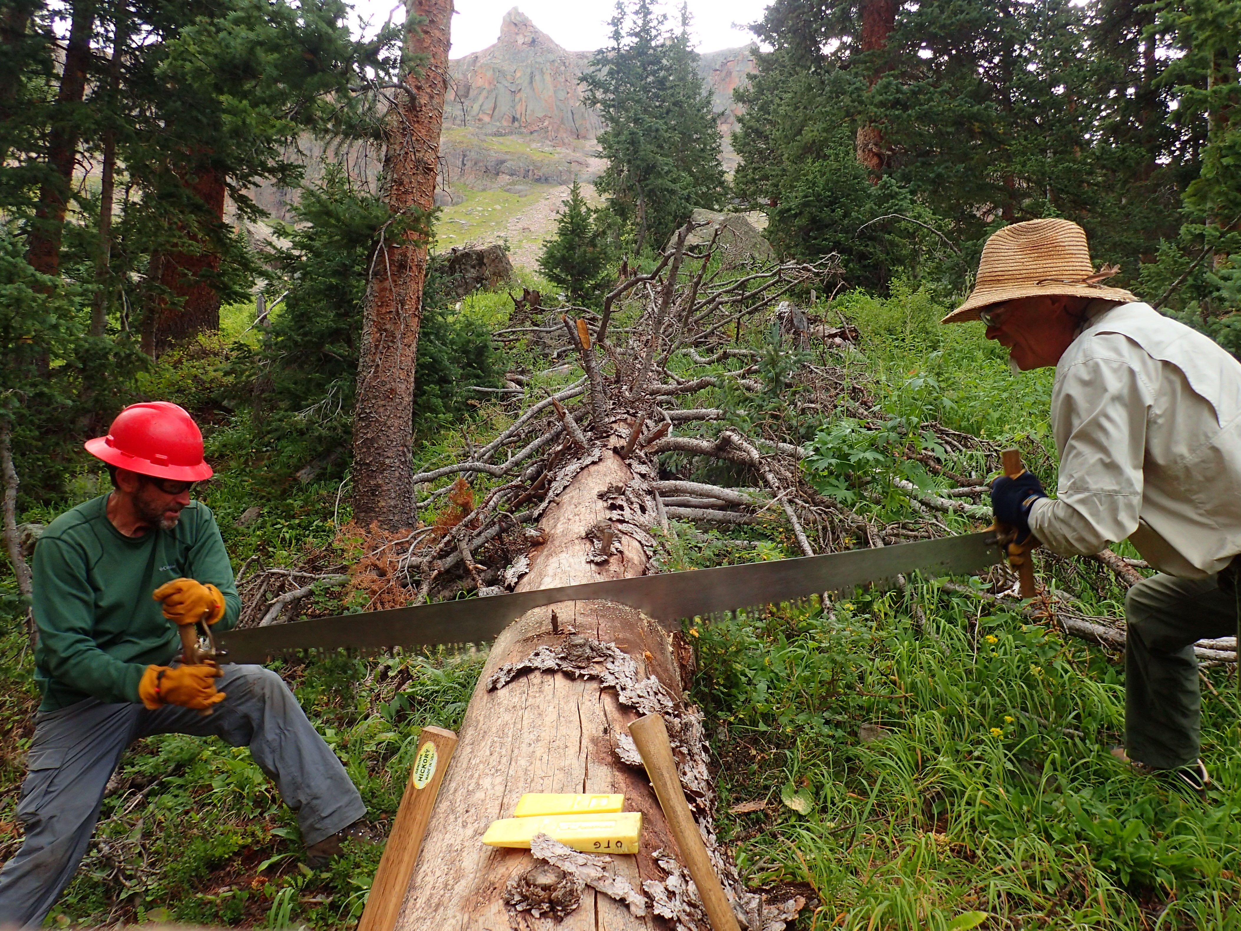 The USFS will provide a one day cross cut saw training course on Thursday, August 8th. OTG members are invited to participate. Contact Steve Boyle at s.boyle3329@gmail.com to register. Become an OTG member at ouraytrails.org. This is a great opportunity for OTG members to learn to use this tool safely in the field. Our cross cut sawyers are a fun group!