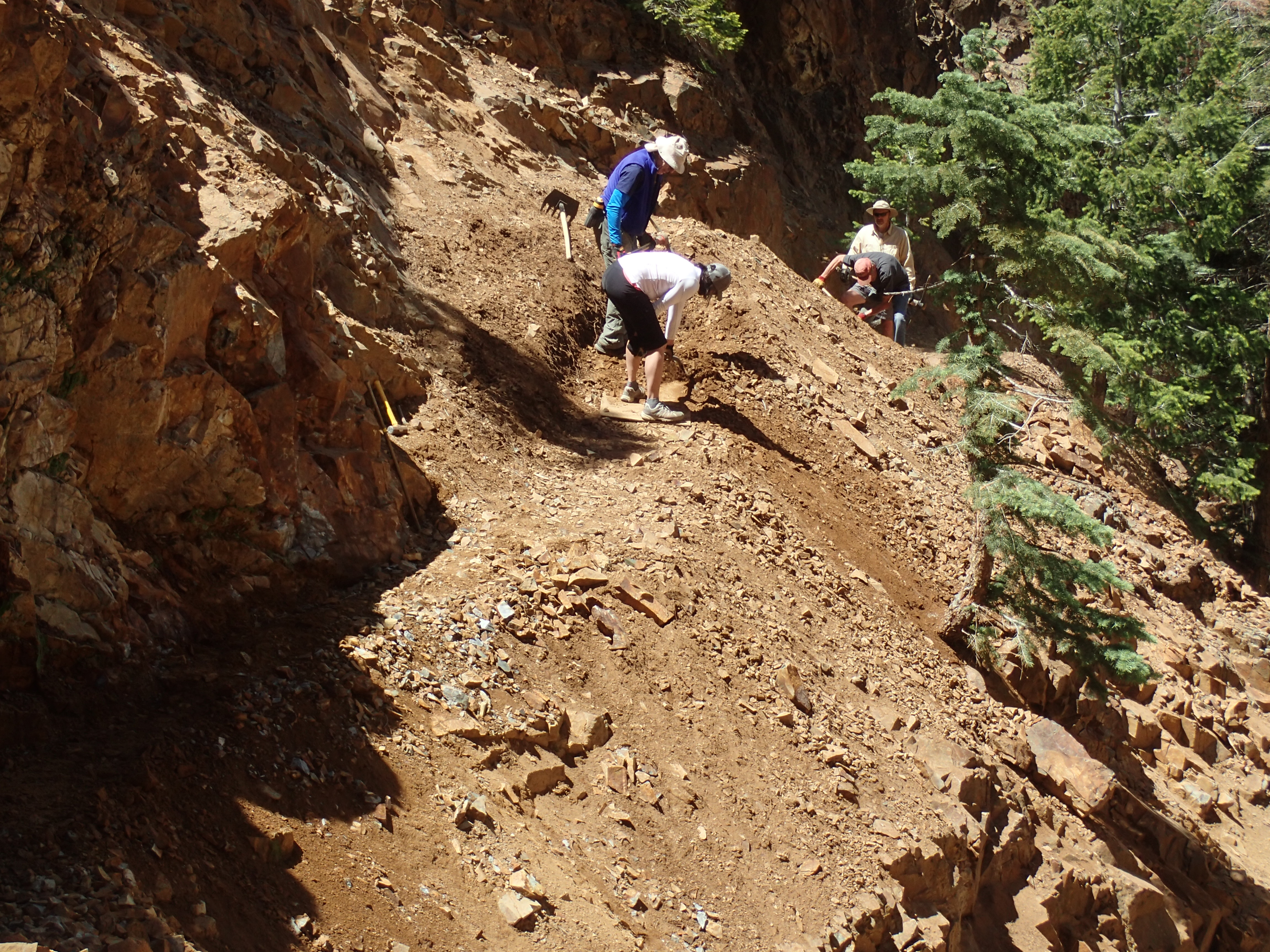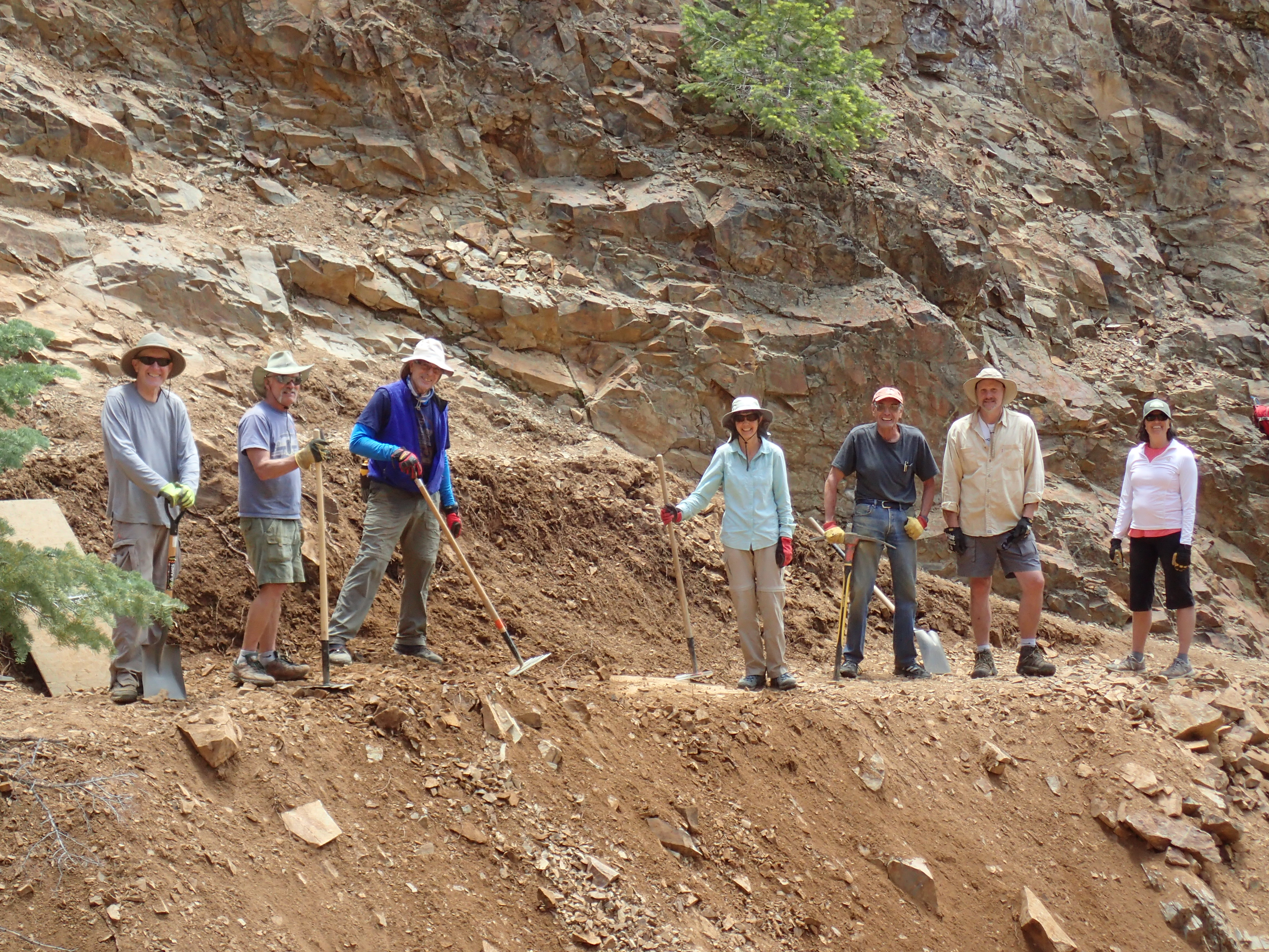 Eight volunteers cleared trees, removed brush, and performed tread and drainage repair on the entire length of the Weehawken and Alpine Mine Trail. Thanks, Crew!!